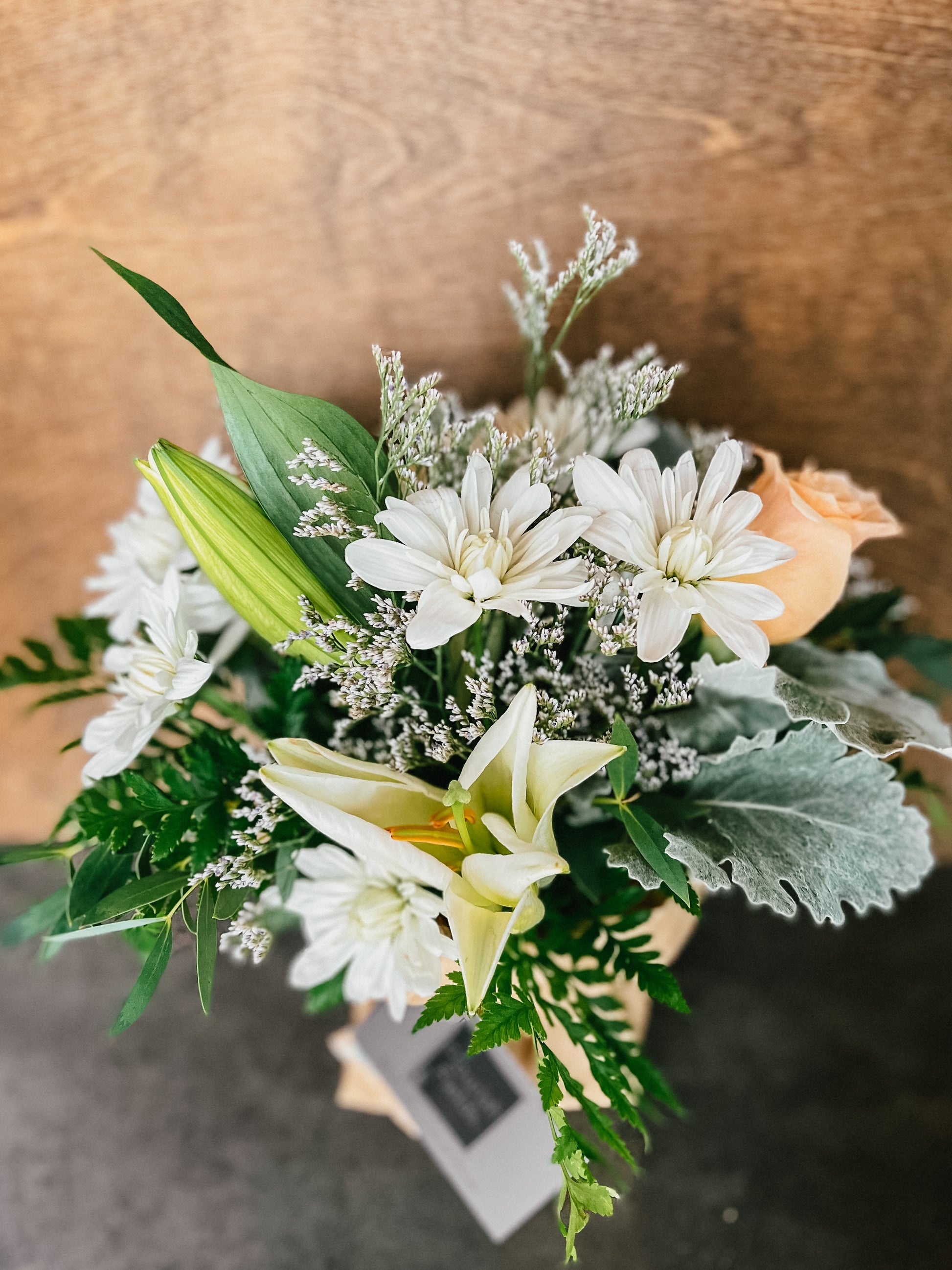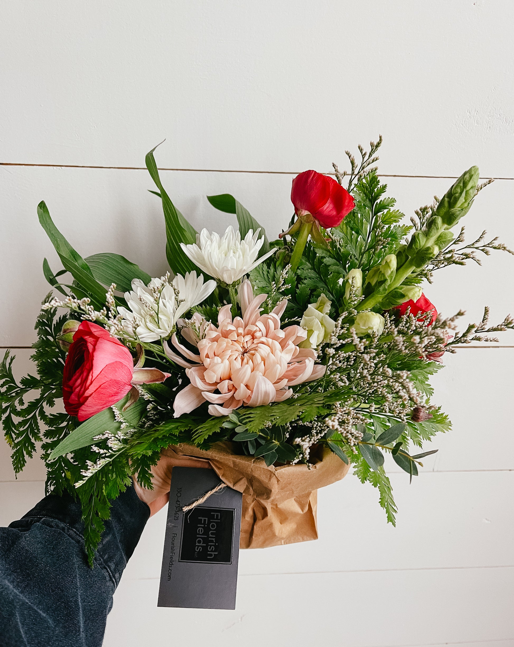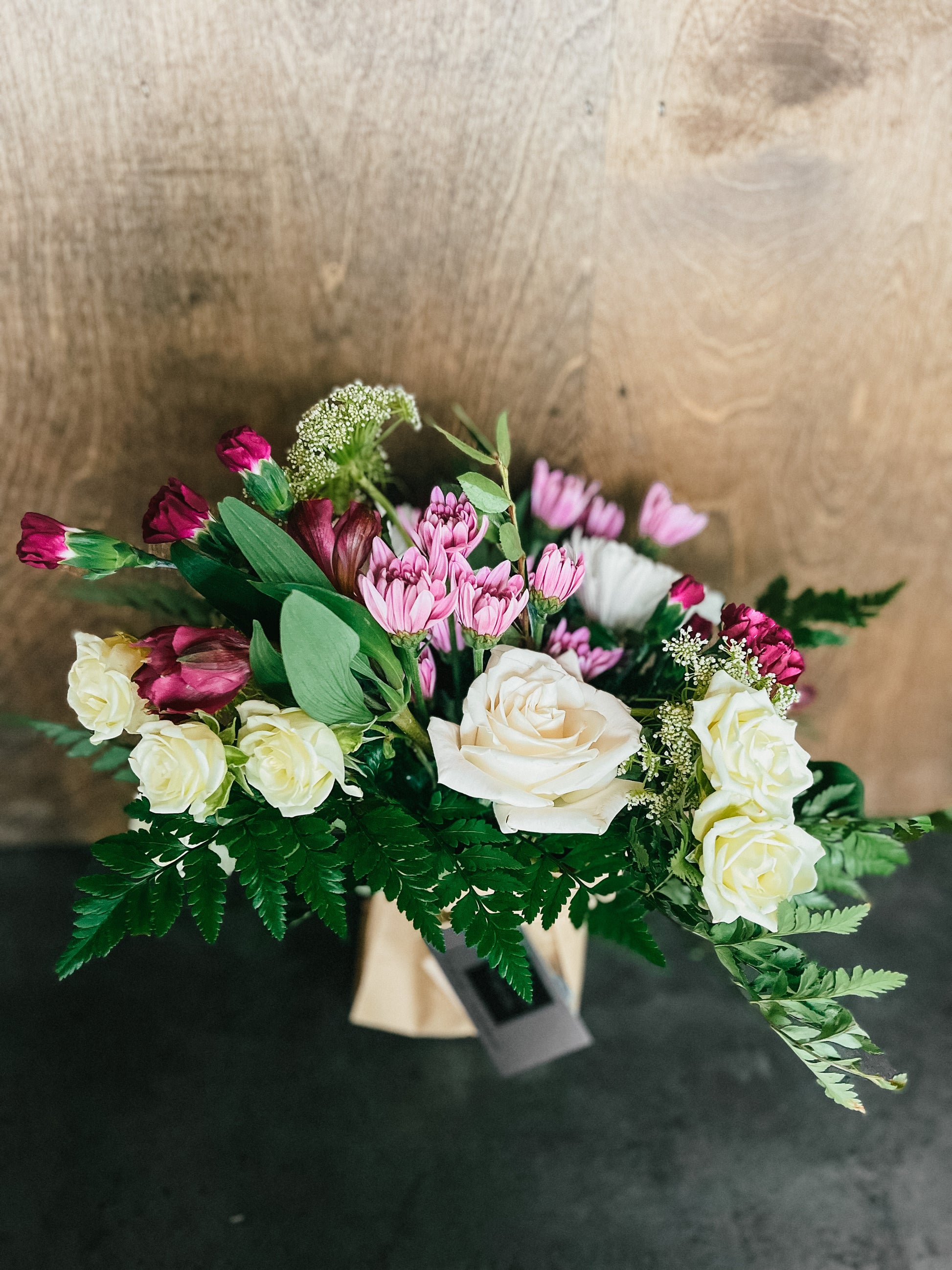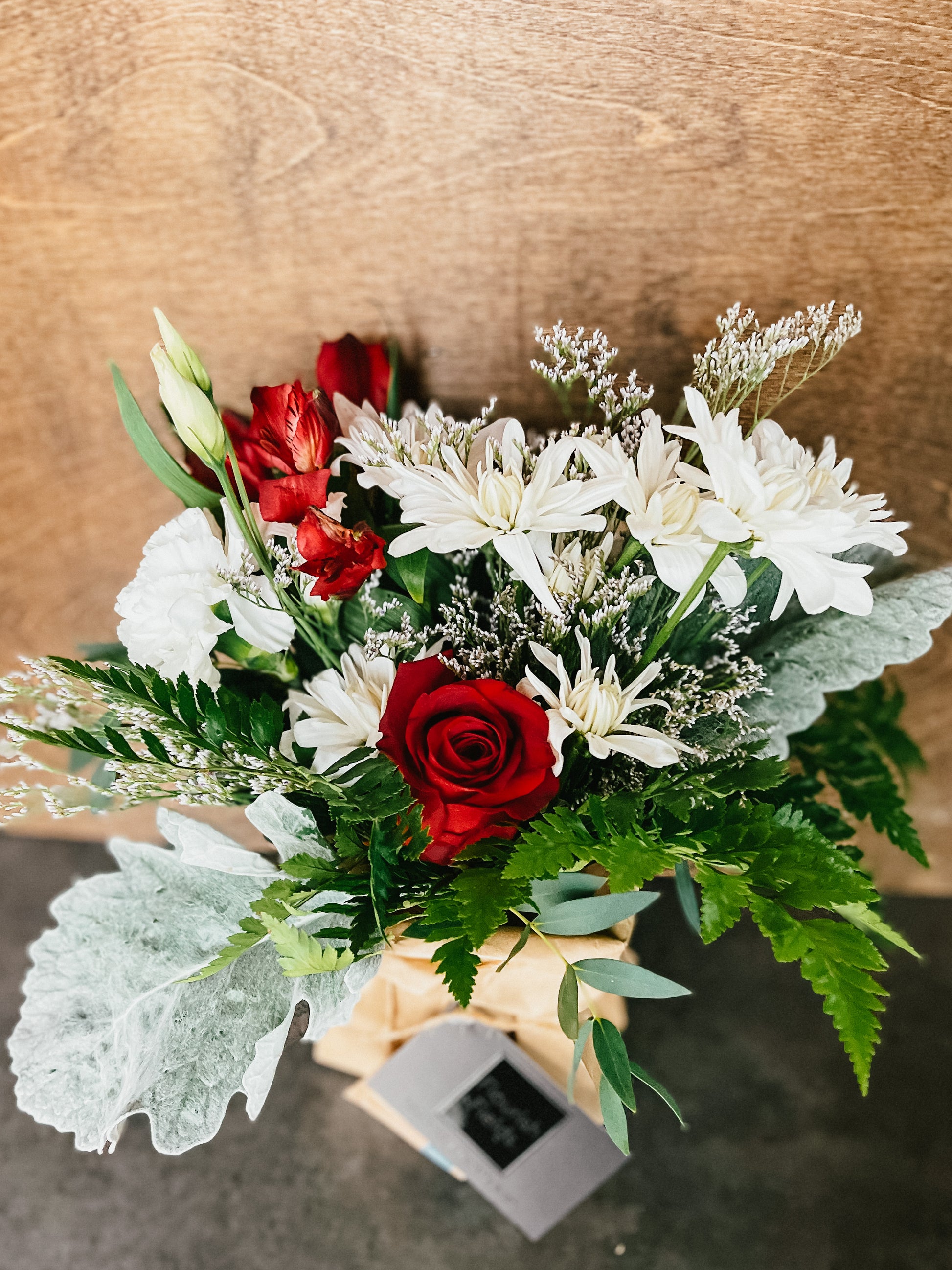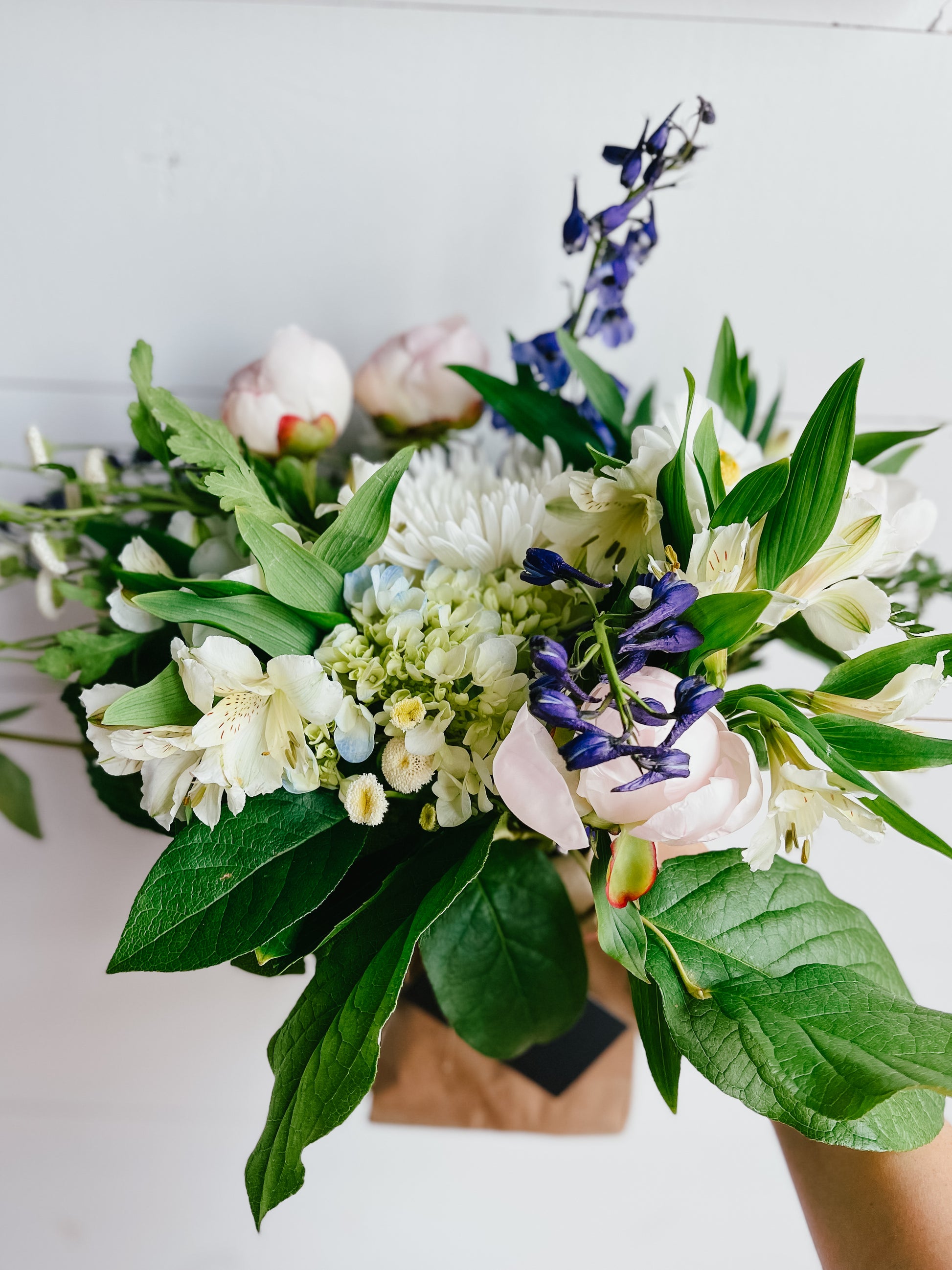 Please use this to pay for in store only, to help guarantee the item you’re wanting to purchase is available. Small mason jar, filled with blooms and greens. During our flower season jars are filled with local blooms. during our off season jars are filled with a variety of flowers based on availability. A perfect size to gift.